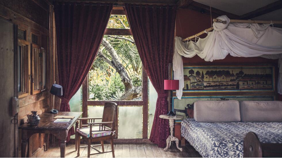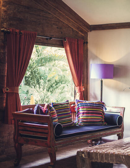 A captivating fusion of rustic charm and sustainable design, each individually-styled villa is a masterpiece in itself, adorned with handcrafted furnishings, eclectic artwork and vibrant patterned textiles. Stepping stones lead to each of the retreat's standalone thatched houses, creating a village-style setting that feels worlds away from a hotel. Across the resort you'll find endless cozy nooks for reading and relaxation, from pool-side daybeds to private terraces that offer serene views of the lush gardens beyond.