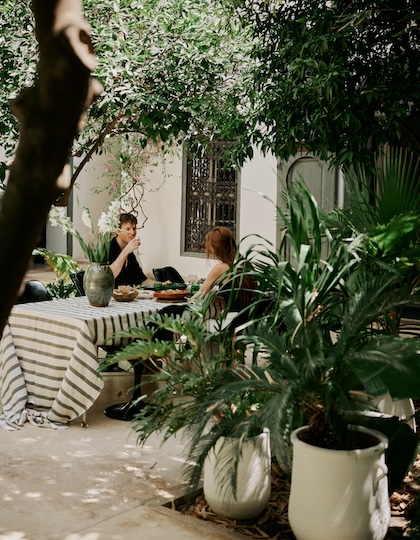 The hotelier, who visits Morocco at least once a month, now operates two hotels in the country: Riad Mena, and a rural retreat in Oumnass called Berber Lodge, some 30 minutes' drive from the Medina. "It's the juxtaposition that I love so much about Marrakech," Schurer Merckoll says. "I'm always surprised that the city is so bustling but you can enter the calmest natural spaces just a short drive away. My favourite thing to do is lie under the 100-year-old olive trees at Berber Lodge – it's just divine."