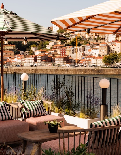 The hotel’s rooftop cocktail bar offers jaw-dropping views across the Douro toward’s Porto’s hill-hugging old town | Credit: Francisco Nogueira