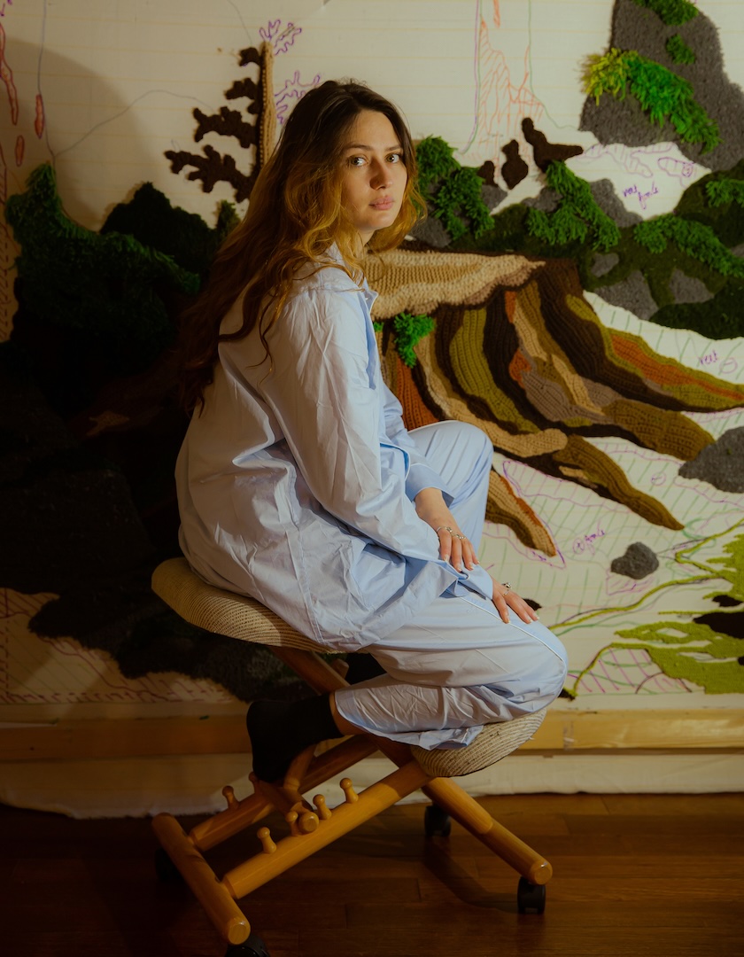Known for her innovative approach to tufting, knitting and embroidery, the Paris-based artist, who grew up in the mountains of France’s Haute-Savoie region, creates tapestries alive with a playful, dreamlike sensibility. Her vibrant creations, whether inspired by the serene peaks of the Swiss Alps or the intricate beauty of forest moss beds, honour the power and mystery of the natural world. Here, she speaks to SUITCASE about her creative rituals, the landscapes that shaped her, and the meditative joy of bringing her fantastical visions to life.