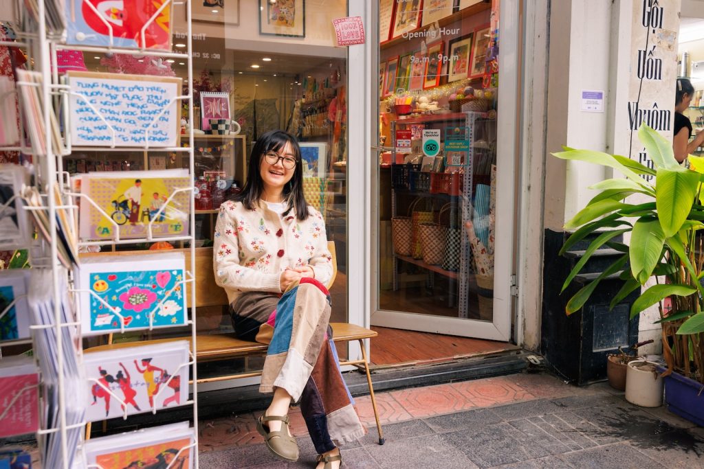 Miên, founder of Líu Lô, outside her shop in the Old Quarter