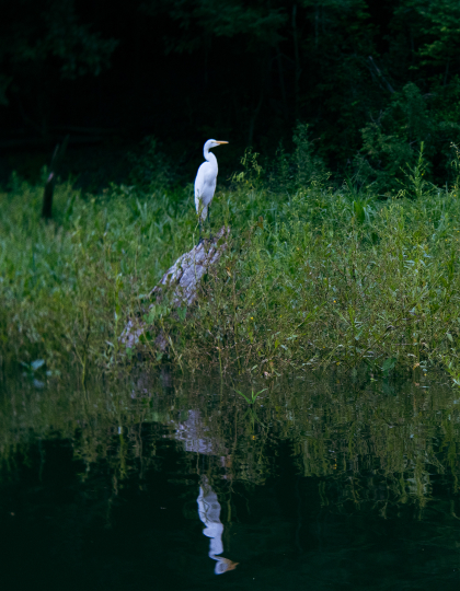 Back in my cabin, I kick off my hiking shoes and look down nervously at the floorboards, imagining the sharp-toothed monster below. Somewhere in the back of my mind, I remember an old children's tale about a castle surrounded by alligator-infested waters. Here, “infested” doesn't seem to quite fit – after, all the forest and river are his home. I am just a guest.