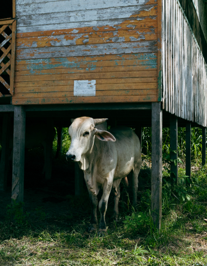 The involvement of ribeirinhos in the project offers visitors the chance to learn about the region's indigenous communities. On our second day at Uakari, we set out to Carvalho’s hometown, Vila Alencar. With the water levels still low, we're on foot, hiking for 40 minutes. Arioste "Tote" Martins Carvalho, one of the town's leaders and our guide's brother, meets us when we arrive, and we head to an old school building that's been transformed into a community centre. Nearby, a herd of cows takes refuge from the midday sun. Cattle, and other resources, are shared among the 30 families who live in the community.