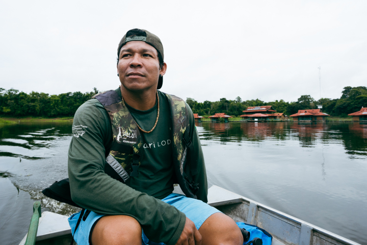 Ailton Martins Carvalho works at Uakari, a floating lodge designed to impact the environment it sits in as little as possible