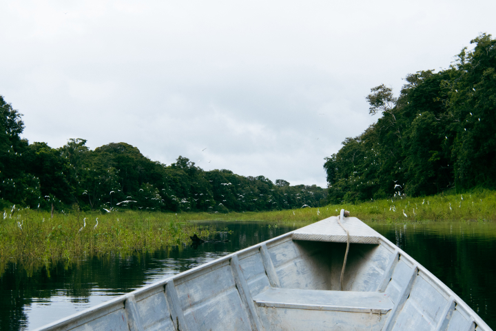 Excursions from the lodge are done by boat in the rainy season, when the surrounding forests flood