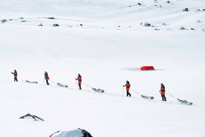 Challenge guests learn how to haul kit on a pulk and camp overnight on the frozen terrain | Photo credit: Jack Anstey