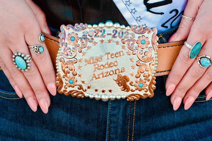 Etsitty's heritage provides her with a particular slant on the role of women in rodeo, she feels. "My Native American community honours the matriarchy, so I haven't grown up with the view that rodeo culture is necessarily male-dominated. I guess I've always seen it as women calling the shots." Readjusting her turquoise satin necktie, she's quick to add that gnarly danger is ever present at the rodeo and shouldn't be taken lightly. "There's always a risk of injury with horses. I was at a barrel racing jackpot where a lady was crushed to death by a horse. The risks are serious," Etsitty warns, before scooping up her daughter and heading off to take her seat on a panel discussion about sisterhood and mentorship.
