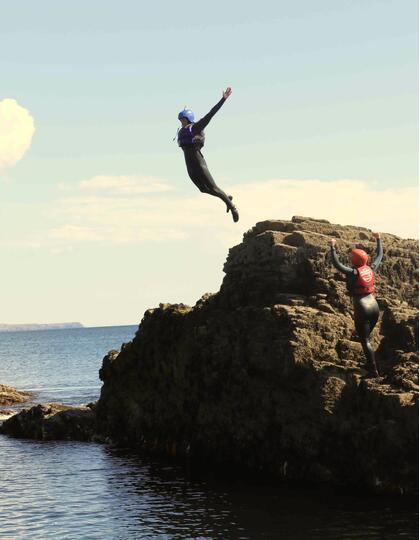 A tourist draw in the summer, renowned for its Christmas lights in December, Mousehole is less associated with outdoors pursuits such as coasteering - which involves getting from point A to point B via a series of cliff scrambles, ocean swims and rock jumps. After issuing us with hard hats, gloves and thick, hooded wetsuits, our guide, Chris, took us through a safety briefing before leading our group around this gloriously rugged section of Cornish coast.