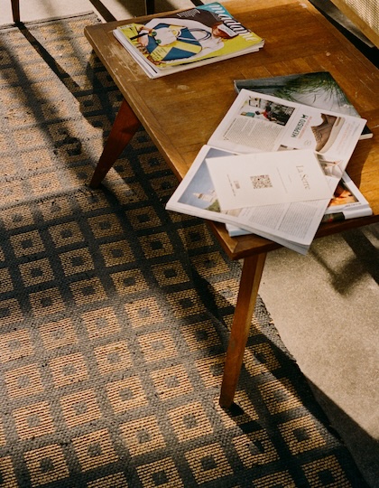 It’s the beating heart of the whole operation, with sofas and armchairs as comfortable as they are good to look at arranged around a centrepiece traditional tiled stove. Coffees, juices, wines, beers and cocktails are available day and night, with bigger gatherings spilling out onto the terrace, where, at the time of our visit, daddy-long-legs danced lazily across tables and the crisp autumn air was filled with the reassuring coo of wood pigeons. There’s also a bar in the garden, sending out crisp rosé in the summer months; vin chaud in winter.