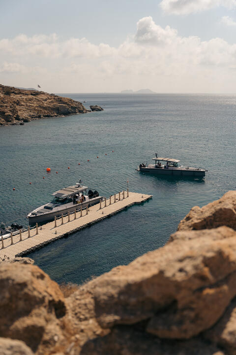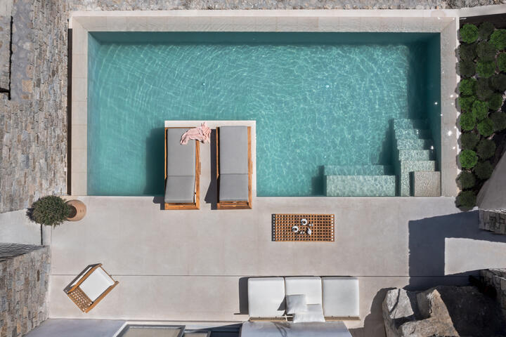 Aside from that ginormous swimming pool, you mean? A gym, boutique and Pilates studio - TikTok stars, go get it - should be ready by the summer season. There's a private port and boat that'll whisk you to Spilia for a lobster lunch, then to Scorpios for the afterparty. Complimentary shuttle buses and golf buggies will ferry you anywhere else you need to go.