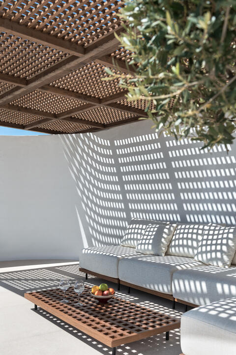 Rooms? That's an insult to these sea-gazing, sugar-cube sanctuaries, each of which comes with a private pool. Glide across the olive tree-flanked terrace dotted with sun loungers and shaded by a pergola to find a sprawling living space decorated in a calming palette of Brunello Cucinelli resort collection neutrals. Beds the size of small catamarans sit at the centre and bathrooms are bedecked in marble. Ours had tiling in a hazy sunset-pink hue, and rose-gold taps in the big-enough-for-two rainforest shower.