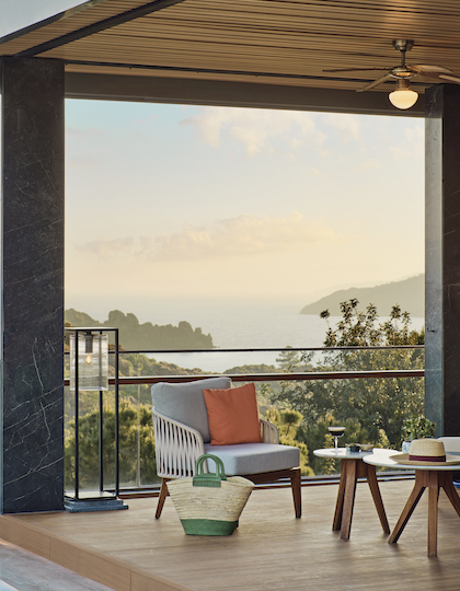 Cuddling up to an unspoilt stretch of coastline on the Turkish Riviera, D Maris Bay’s brutalist grey exterior appears hazy thanks to the scorching summer heat as we drive up the secluded – 5km-long – path. Clinging to a dazzling bay surrounded by soaring volcanic mountains and valleys dotted with pine and almond trees, the stark exterior of this Aegean Sea-gazing property is at odds with the sumptuous interiors awaiting inside – sleek marble, lots of dark wood, modern Turkish art and Zen-invoking water features. Yet, despite the strange looks – stranger still given the strict planning permissions in place on this particular part of the Datça Peninsula – once you catch a glimpse of those stop-what-you're-doing bay views offered from within, any architectural concerns vanish.