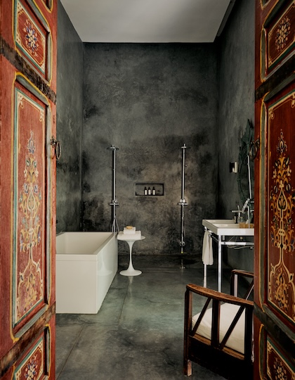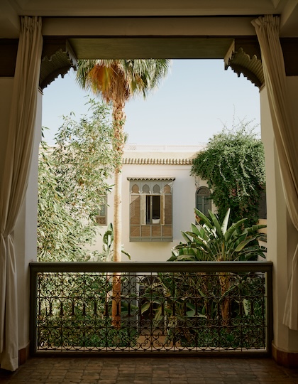 There are just seven, each uniquely appointed and designed to best suit its positioning around the riad, with interior inspiration taken from around the globe, and from sure-footed travellers of years past (think Beat poets, and modernist designer Eileen Gray). Beneath high ceilings, traditional features and crafts have been paired with more modern accoutrements. Accessed by zigzagging staircases and interlinking terraces that lead off lush garden courtyards, the largest – The Studio – is an airy, open oasis, with tiled floors the colour of sea foam, off-white walls, and a vast free-standing bathtub shrouded from the cloud-like bed by a soft, gauzy curtain. The smallest – The Writer's Den – is our favourite: a cosy corner spot overlooking the pool. Despite its diminutive size, one whole wall of the room is taken up by intricately painted red doors that lead to a shower space. Bathrooms in all rooms are designed by Philippe Starck.