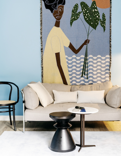 A relaxed communal corner, left, and one of Coco’s 88 hotel rooms