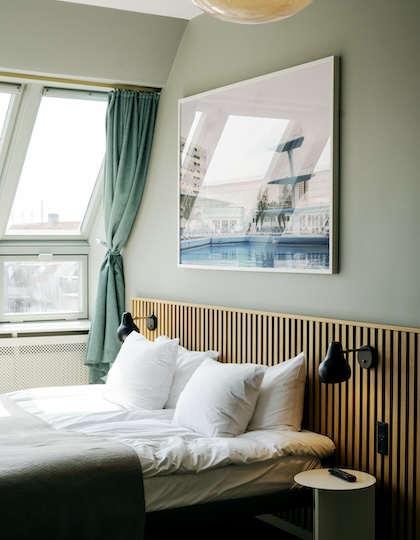 Buses stop right outside the hotel and can easily get you to cool Refshaleøen, the former shipyard that’s home to Noma (for now), Alchemist, Ferm Living, Copenhagen Contemporary, Lille Bakery and La Banchina – the swim/drink/sauna bar Instagram loves. Or you can bike, of course, if you know what you’re doing.