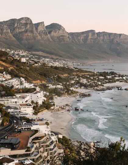 Sizani outside Merchants on Long, a boutique store stocking some of Africa’s exciting fashion talent, left, and the Cape Town shoreline