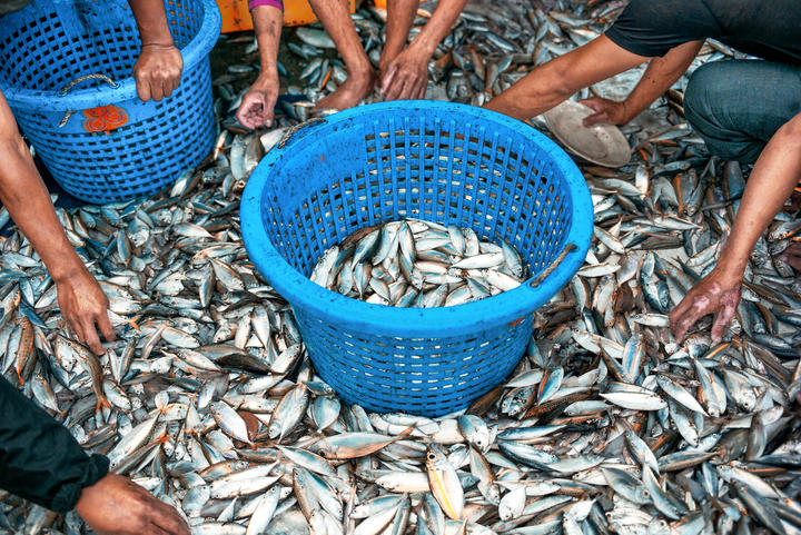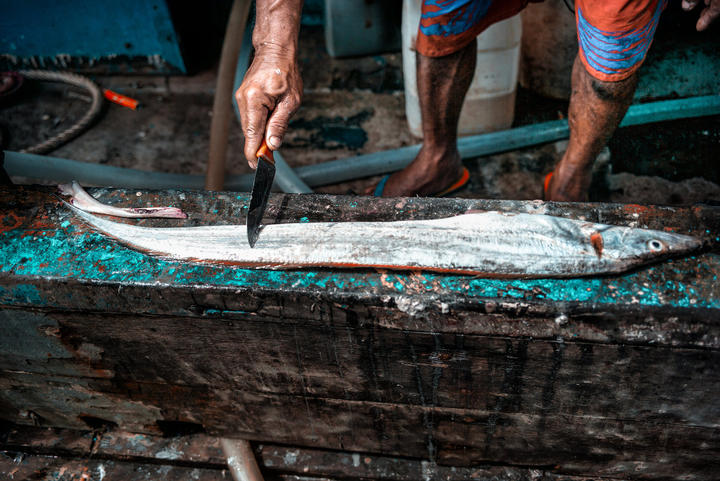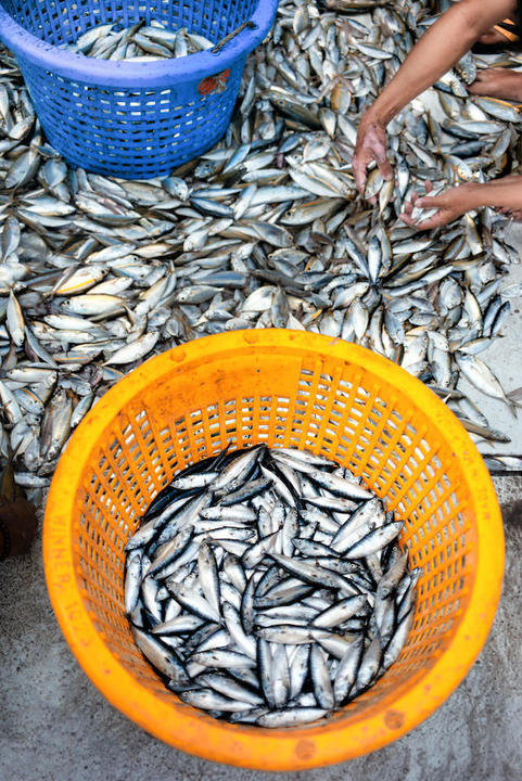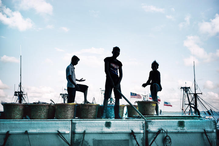 In Sandakan's fish market a group of cheeky teenage boys pose like pirates atop their boat, surrounded by plastic baskets full of their catch and winking and yelling above the din of the traders. Later we spot a busy dock on the roadside and delicately pick our way across missing boards towards a boat loaded with jeering men, who quickly settle down when confronted with a camera. One boy lazes in a makeshift hammock-slash-fishing-net like some kind of ethereal merman, as men strip the fish of their scales around him.
