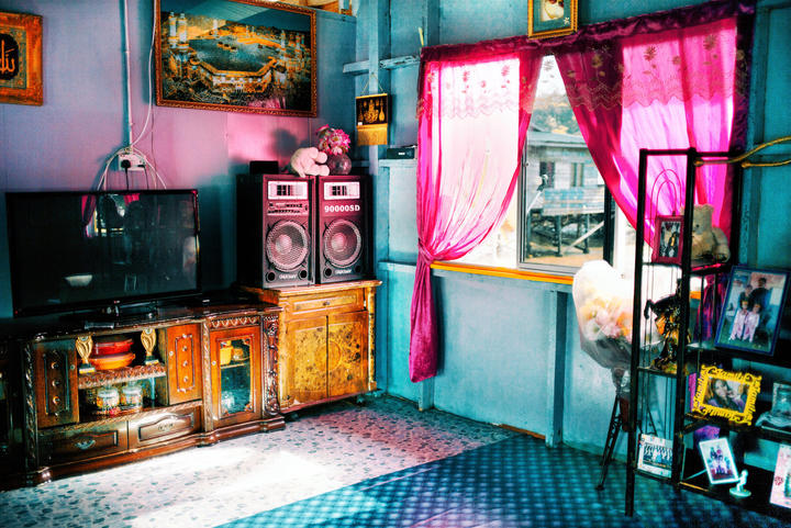 On the rickety wooden piers of Sim Sim Water Village, one of the few remaining "floating villages" that string the water's edge in the city of Sandakan, we bump into women bustling down the boardwalks wearing bright headscarves, skirts and parasols to shade them from the heavy heat. Crayola-coloured fishing boats hang from posts, bowls of silver fish shine like discarded razor blades and children in Disney-print pyjamas run alongside us - ducking into one of the rainbow houses, we catch a boy stretched out on the peeling linoleum floors, napping away from the midday heat.