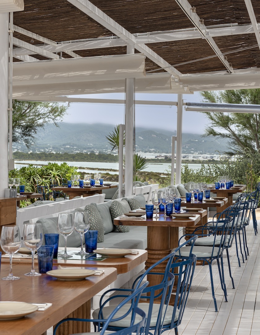 Having acquired the four-storey hotel, a Unesco Property of Cultural Interest, in 2021, the hospitality group – founded in 2007 by childhood friends Olivier Bon, Pierre-Charles Cros and Romée De Goriainoff – initially reopened the restaurant and rooftop bar, before, in January 2023, unveiling the pièce de résistance: 30 rooms and three suites. While the building’s iconic custard-and-cream facade and five-star views of the historically pirate-deterring Dalt Vila castle remain unchanged, the all-new state-of-the-art amenities installed throughout speak to the tuned-in travellers of today, and a dynamic, finger-on-the-pulse team goes above and beyond to make every stay meaningful. A lobby boutique stocks the hotel’s covetable, locally made tan leather tassel key rings, towels and totes, plus a get-the-island-look line of jewellery and clothing. Artful quirks and curios are everywhere, all expertly muddled to create an elegantly nonchalant vibe. And then there’s that beachside escape...