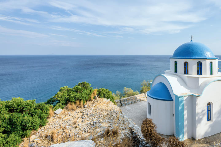One of the best things to do on Ikaria is to hire a car and simply follow the highway etched into the mountains around the island. Purple, blue and yellow flowers line the roads, and steep, jagged cliffs dotted with olive-green vegetation provide a dramatic backdrop. It's hard to tear your eyes away. Every so often you'll come across a small settlement of whitewashed homes or fishing villages where you can stop for fresh seafood and saganaki (fried cheese) as crystalline water laps at the harbour and cats gather round, ready to snatch your lunch.