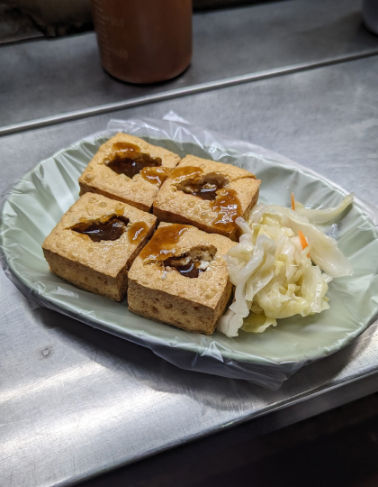 Our guide, Tina Fong of Taipei Eats, is laughing: “That sign above us reads ‘Everything on Earth smells sweet, but only I am stinky!’” We are in a shophouse in the city’s central Xinyi district, where a server is dishing up the pièce de résistance of Taipei Eats’ Iconic Food tour: the most utterly pungent stinky tofu, one of Taiwan’s most famous dishes. Its distinctive aroma is thanks to a long process of fermentation. Biting into it yields a flavour like a cross between durian and Roquefort, with the consistency of cottage cheese.