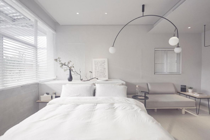 Minimalist The Door Inn sits around the corner from historic shophouses and Nigxia Night Market