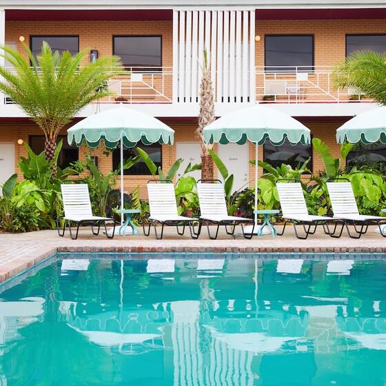 Check in with the city's art crowd at the 2021-opened Hotel Saint Vincent, whose 75 disco-ready rooms nestle inside an 1800s-built, red-brick beauty in the Garden District. Don't be confused by the moody dark-grey walls - they act as a backdrop to lipstick-red bathroom tiling, psychedelic-print pillowcases, life jacket-orange striped pool loungers and bruised-plum velvet love seats. Live events are a highlight here, so sip a pre-dinner cocktail at the late-night, dimly lit Chapel Club, tuck into Gulf flounder piccata at restaurant San Lorenzo, the hotel's love song to Italian coastal cuisine, then head onto the veranda to catch a live jazz performance as the sun disappears.