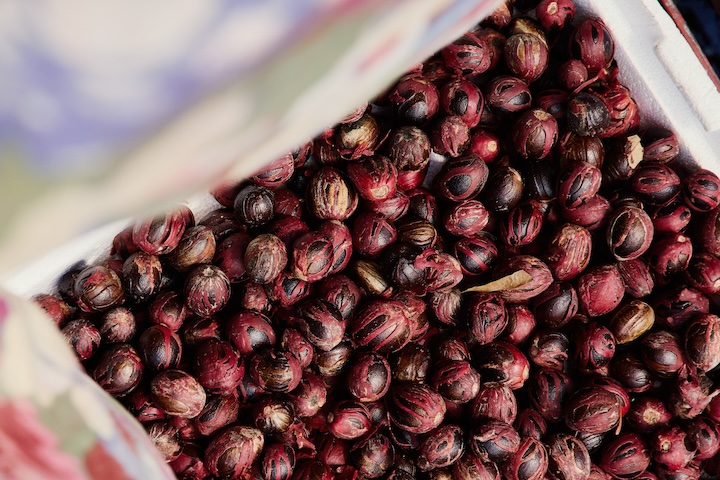 In 2024, with the country celebrating 50 years of independence, the colours of its flag adorn walls, fences and telephone poles islandwide, echoed in a scarlet fishing boat, Unique Force, we watch bobbing on the glittering water of St George’s harbour; empty nutmeg shells painted yellow and tipped onto the ground – Grenada’s home security system of choice, their being impossible to as much as tiptoe over quietly; and the handfuls of kelly-green callalloo, a versatile, spinach-like veg, that go into Chef Kennedy’s giant cast-iron pot.