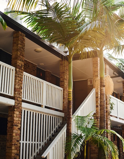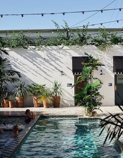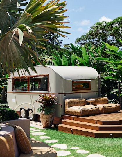 Once a worn-down motel, The Sunseeker was recently rejuvenated by Jess and Dave Frid, who recruited a band of local makers, artists and designers to create what is now a vibrant design hub brimming with art and collectables. Working with eco-minded builders Balanced Earth, they kept the original bones of the 80s-built red-brick motel and updated it in a clash of bold shapes and colours. Outside, there’s a terracotta-tiled pool and six restored timber bungalows.100 Bangalow Rd, NSW 2481; thesunseeker.com.au