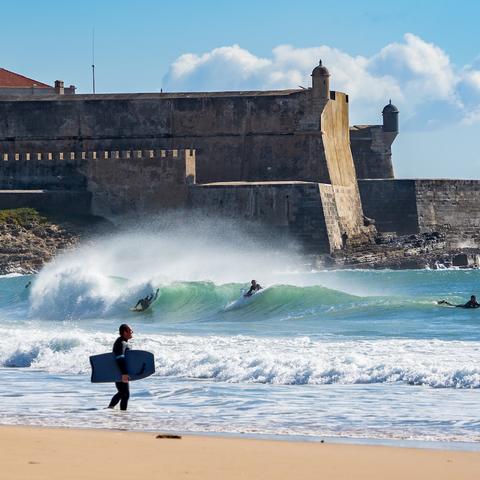 The relatively gentle waves at Carcavelos make it an ideal spot for budding surfers to learn the basics, with a number of surf schools offering both private and group lessons in English and Portuguese. To the very eastern end of the beach lies a spattering of rocks, leading up to the imposing São Julião da Barra Fort, a 16th-century military defence complex, which originally controlled access to the port of Lisbon.