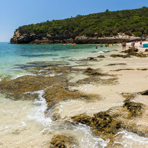 At the first sign of spring, Lisbon residents grab their beach bags and flock to Carcavelos, the most popular beach north of the River Tagus. Easily accessible by train from the centre of Lisbon, this commercial beach should not be underestimated in its beauty. Its wide expanse of honey-coloured sand is framed by a row of bars and restaurants, which sit along the 1.5km-long promenade above the beach. During summer, these bars are the perfect respite from the blazing sun, serving cocktails, smoothies and such under the shade of wide, red umbrellas.