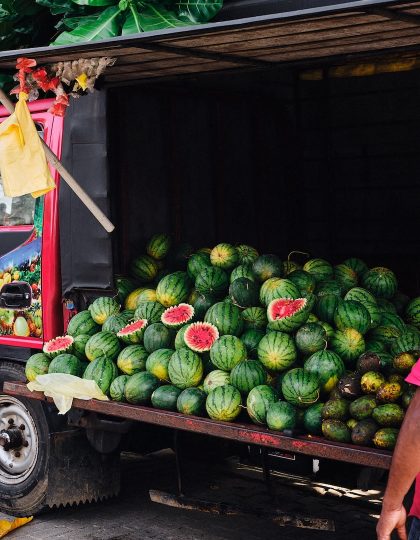 Her warm, saturated images of Ahangama put the surf town’s residents, and its temporary visitors, in focus: vignettes are offered of boys playing in the waves, their sun-kissed skin glittering with droplets of seawater; the passionate pinks and reds of watermelon and lychee, on sale from the backs of trucks and street-side stalls; and a coastline awash with celestial golden light. It’s a dreamy, indolent world.
