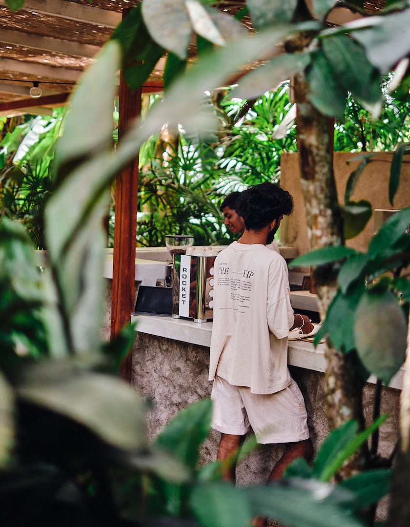“Around here, sunrises are spent surfing at Lazy Left or Devil’s Rock,” Croker tells SUITCASE, “and are followed by long breakfasts at Sundays or The Kip, drinking icy coffees made with cashew milk in the shade of the palm trees.”