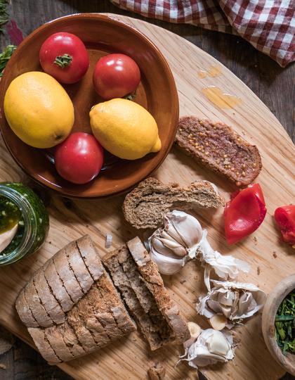 This is how I come to be sitting on a stone bench overlooking the Mediterranean Sea in Son Rullán, the finca I have rented near the coastal village of Deiá. Ancient olive trees surround the farm and sheep roam freely through the house. The smell of spring flowers and humid stone fills the air and I know that the lopsided walls and pebbled floors will make our stay magnificently cosy. In the kitchen my creative partner and culinary ambassador for the retreat, Mallorcan native Deborah Piña, is putting the finishing touches to an alfresco brunch of aubergine cake and beetroot salad. When the guests - a creatively minded mix of music producers, stylists, architects and photographers - arrive we sit down at the long table in the golden afternoon light, open a couple of bottles of local wine and celebrate with pa amb oli, our own upscale version of Mallorcan peasant food. It consists of thick brown bread with cut tomatoes spread on top, olive oil and a huge assortment of local cheeses, pickles and charcuterie, including sobrassada, a cured sausage from the Balearic Islands which is impossible to find in the US.