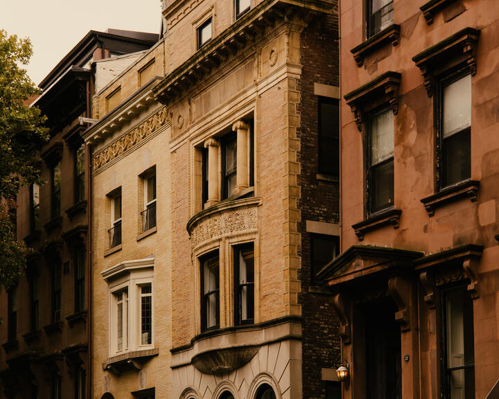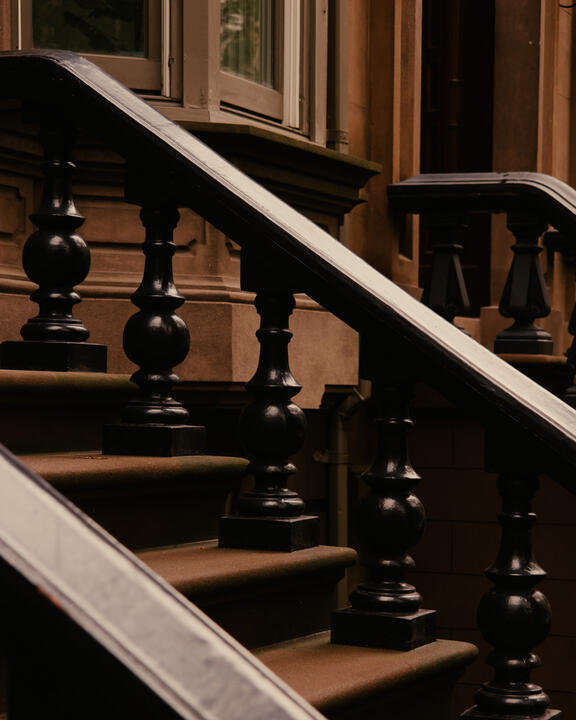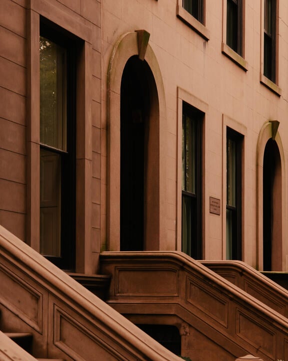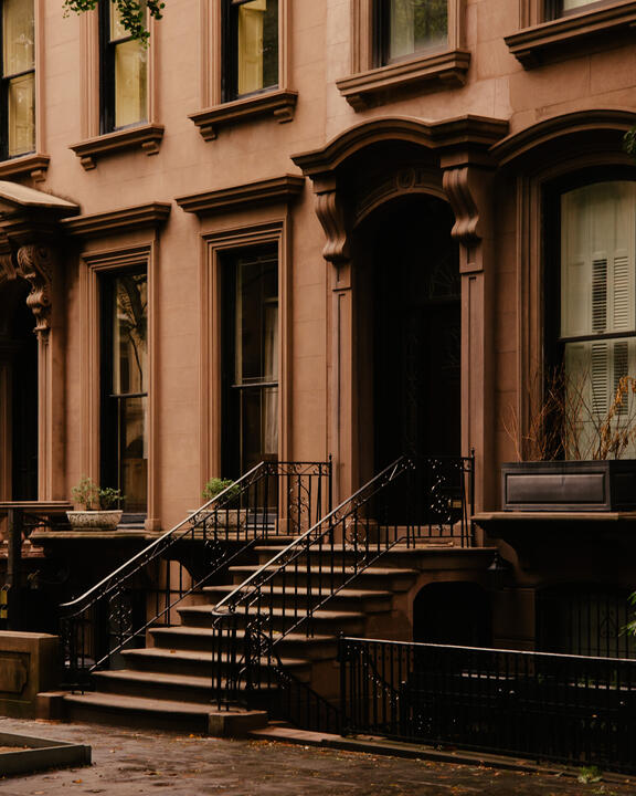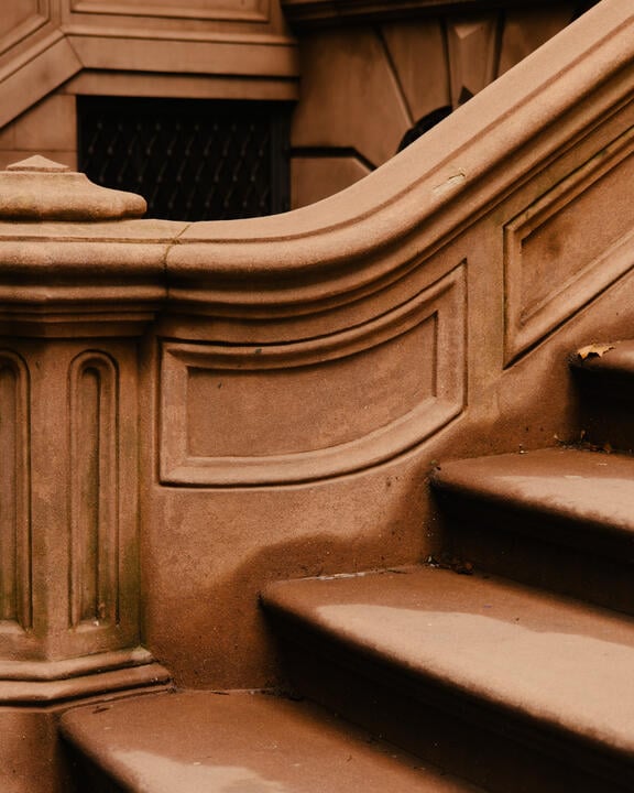 A defining feature of the district is the abundance of brownstone houses. These elegant, multistorey homes are made of a type of warm, reddish-brown sandstone that was a dominant building material in the 19th century. The buildings are three or four storeys tall, with stairs ("stoops") leading up to the front door above street level.