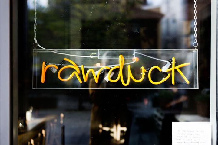 Living around the corner from Rawduck is not always a good thing. Whenever it comes to planning drinks, dinner or brunch, we have every intention of booking somewhere new. And then we remember Rawduck's concrete bar stacked with jars, the fanning banana leaves, the spinning vinyl, the natural wine and the eclectic, satiating food. Any hopes of branching out are dashed in an instant. Rawduck is the sister restaurant of Ducksoup in Soho and the two spots couldn't be more different to look at - while the Hackney branch is a big, breezy dining room with long sharing tables and a large open kitchen, Ducksoup occupies a glowing, stripped-back nook on Dean Street, with most of the seats along the upstairs bar. But both restaurants are rooted in the same culinary philosophy.