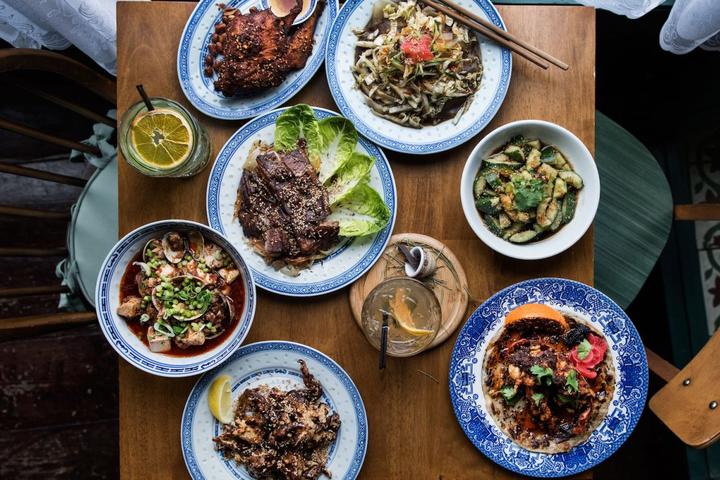 Good old Upper Street. Islington's main drag has no shortage of places to fill up on great food, earning it the nickname 'Supper Street'. And amid the ramen bars, Turkish grills and elegant little bistros, a new spot has opened its doors. With an interior that would make Wes Anderson drool its candy pink exterior sign, Chinese Laundry is hard to miss. Run by best friends Tongtong and Peiran, the restaurant specialises in the regional Chinese home cooking which they grew up eating. Like stepping into the cosy living room of the Chinese grandmother you never had, the interior is awash with various kitschy antiques and patterned wallpaper.