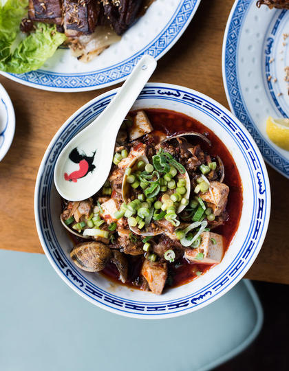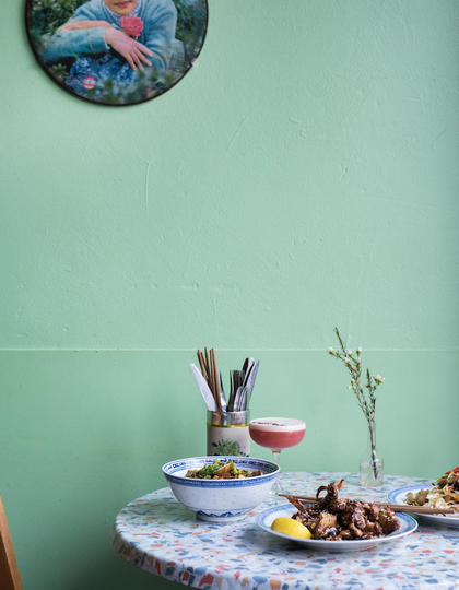 Sharing is order of the day, with food designed to be grabbed, torn and slurped: lobster tail with Chinese pancakes, caviar and orange; sweet, basil-chicken popcorn; pillowy mantou buns; northeast-style glass noodles. Brunch is also a winner, with freshly made rice and peanut milk, stuffed steamed buns and purple sweet potato omelette with mustard green and creme fraiche. This is not the kind of Chinese cooking that Londoners are used to. As well as punchy ingredients and imagination, Chinese Laundry's food is cooked with a nostalgia for the country its owners left behind. Creating something unique in London is a tall order, but Tongtong and Peiran have done it. Here, they tell us how. While we try to keep our eyes off their buns.