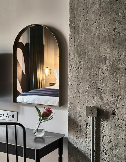 All 32 industrial suites - studio, one- and two-bed - merge nods to the city's history with utilitarian design. Expect brass details, acres of raw concrete, splashy artworks and a proclivity to put books in any unused spaces. Each room has a hand-painted wall mural from local artist David Brits, plus Delft-style tiling behind the kitchenette area.