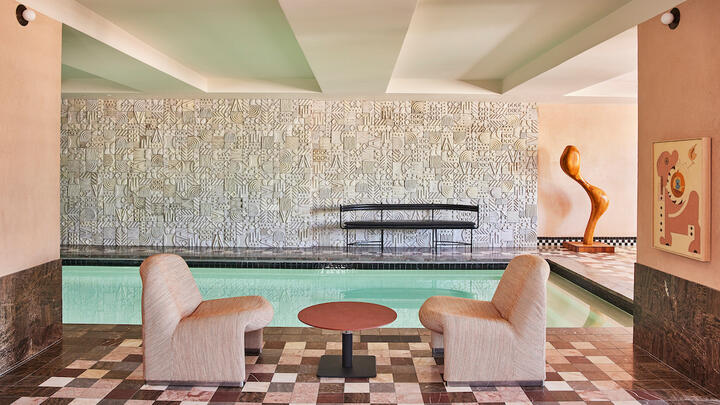 The 148 rooms could be straight from Kim K's Hidden Hills manor - all Skims-approved neutrals with handwoven fabrics throughout. Furniture is dark and Spanish-influenced, while walls are splashed in tones that tally with Nars blusher colours. Think Illicit pale orange and Sex Appeal peachy pink.