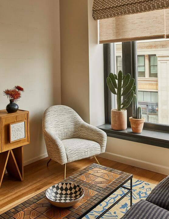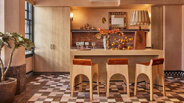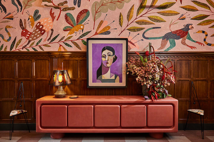 Enter, the Downtown L.A. Proper Hotel. Situated on the corner of Broadway and 11th Street, the hotel welcomes guests with an insane pink mural by LA-based painter Abel Macias spanning the entire length of the lobby, framed by two pop art-perfect cacti. Elsewhere, the vibe is very much that of a Spanish-inspired second home in Los Cabos - think olive and lemon trees, checkerboard tiling, Mexican-influenced linens and lashings of teak. There's fearless use of colour across the board - the work of our ultimate interiors crush, Kelly Wearstler. The design guru - who, having worked with clients including Gwen Stefani, Cameron Diaz and Stacey Snider, is a bona fide real deal in Hollywood's golden circles - channelled Mexican modernism throughout, with motifs drawn from Portugal, Spain and North Africa, too.
