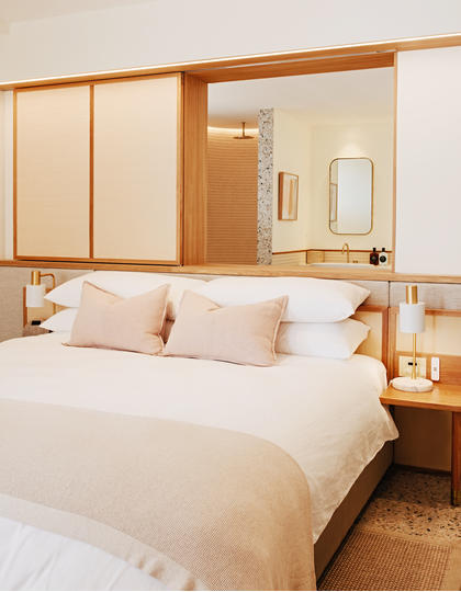 Bed down at The Surf Yamba. The brainchild of brothers David, Andrew and Phillip Mayne, this intimate 12-room boutique hotel oozes a stylish Scandi-style aesthetic. Picture wicker chairs, earth-toned furnishings, hints of blush detailing and a smattering of Italian terrazzo tiles. Mornings should start with a gentle paddle in its plunge pool on the rooftop terrace, where, with each lap, you'll soak up sweeping views across Main Beach.