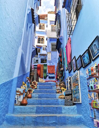 Picture Morocco and the snapshots that spring to mind will most likely be of dusty, sun-baked streets, donkey-drawn carts, labyrinthine souks and elegant riads housed within ochre-coloured sandstone walls. Sidestepping the likes of Fez, Casablanca and Marrakech, though, we'd like to introduce you to the colourful and calming city of Chefchaouen - an all-blue oasis also known as "the Blue Pearl of Morocco". Slotted high in the country's Rif Mountains, the city proves a soothing counterpoint to its terracotta-tiled neighbours. Each year the town's buildings are freshened up with a new coat of blue paint, in a custom that dates back to the 15th century. The reason? Jews fleeing the Spanish Inquisition settled in large numbers here, bringing with them their tradition of painting things blue to mirror the sky and remind them of God.