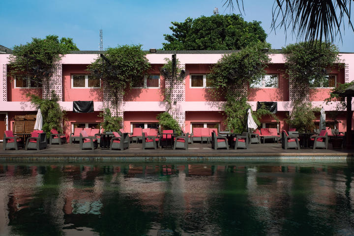 To be a writer one of course needs to have stories worth telling, and in Lagos ample opportunities arise from even the most mundane of circumstances. Setting off from The Blowfish Hotel each morning, a relaxed affair with an Instagram-friendly, Barbie- pink exterior, the city's famous traffic is constant but never dull: turn left and you'll spy a car boot stuffed full of plantain (a staple of Nigerian cuisine); turn right and a goat peers inquisitively at you from the roadside as you drive by. Street hawkers selling packets of nuts weave in and out of the slow-moving traffic, a mix of jeeps and kekes (yellow tricycle taxis) side by side with okadas (motorcycle taxis) in an organised chaos that probably shouldn't work, but somehow just does. This is a city dense with people, noise, life. Shy and retiring, Lagos is not.