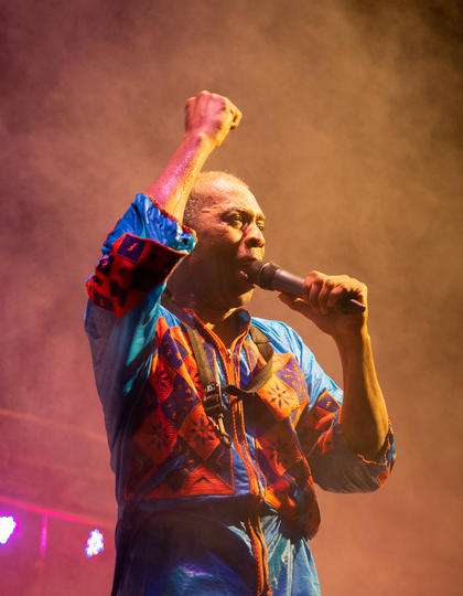 All of this is a preamble to the main event of the night - Femi Kuti and his band the Positive Force, who perform at the venue most Sundays. Accompanied by a line of female dancers in beaded outfits gyrating energetically, covered in sweat but beaming throughout, they play a mixture of Fela's greatest hits and Femi's own music, and as the night wears on, gradually the audience gravitate from their seats to the floor in front of the stage, joining the on-stage dancers in their exertions. Several hours later I bounce home, euphoric, the city's energy pulsing under my skin like an electric charge, or a bolt of lightning, or a flame.