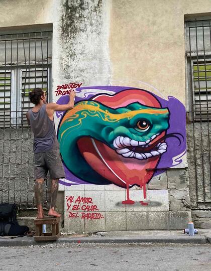 "San Isidro is a marginalised neighbourhood that has become an arts district," says El Fichu (Dennys Alejandro Arroyo Suárez). He started painting as a child, scribbling on his bedroom wall. "It all kicked off when Galería Taller Gorría opened in an old factory in 2016."