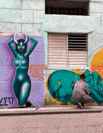 "Spray painting is practically impossible in Cuba because they don't sell it here," Abepi says. "We mostly use acrylics and brushes. Because of the lack of resources, we try to make the most of what materials we have."
