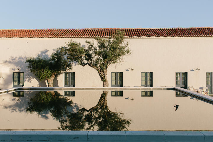 Arriving at this rejuvenated farm retreat brings with it a feeling of homecoming. A golf buggy swiftly collects our bags and we teeter close behind, walking along the cobbles at a leisurely pace. We are guided to the southern buildings, traditionally used to house animals and strategically positioned downwind of the northern buildings, formerly the farmer's lodgings. Inhabited since Neolithic times by sedentary tribes, São Lourenço do Barrocal was once the epicentre of the prehistoric culture of central Alentejo. In the 19th century it grew to become a thriving farming village providing enough livestock, grain, vegetables and wine to sustain up to 50 resident families year-round. With its own chapel, schoolroom and bullring, it was not only a centre for farming and trade but also a tight-knit community.