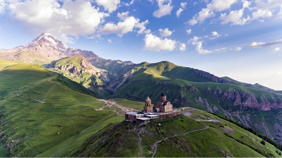 As we re-joined the road and ascended, green gave way to vast swathes of snow and spectacular mountain views. The route to Kazbegi is a storied one: the Georgian Military Road connects Georgia with Russia and is the path that has been taken by traders and invaders alike. Just beyond the rim of the Higher Caucasus lies the occupied region of South Ossetia, while the spectre of Chechyna looms beyond the nearby border. There's a palpable sense that this isn't the average holiday spot, which in turn brings its own inimitable thrill.