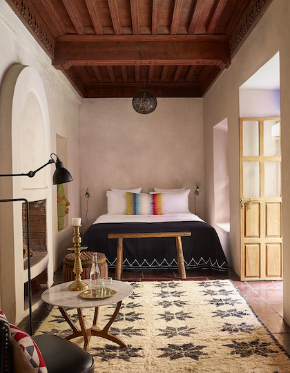 If you're seeking an escape from the frenetic pace of life in the heart of Marrakech, book a room at Philomena Schurer Merckoll's Riad Mena. The seven serene bedrooms at this beautiful medina property are dressed down in soft, neutral tones and have simple, clean-cut furnishings, while bathrooms are Philippe Stark-designed. Splashes of colour arrive though contemporary art and boldly embroidered cushions. Our favourite room? The Writer's Den – a dinky escape (the smallest in the house) made for solo stays. Elsewhere, you’ll find an oasis-like pool and foliage-filled courtyards scattered throughout the building. If you see anything you love during your visit, pop into The Pink House next door – the hotel’s gallery-boutique sells curated homeware that matches the riad’s vibe.Derb Jdid 70, 40000; riadmenaandbeyond.com